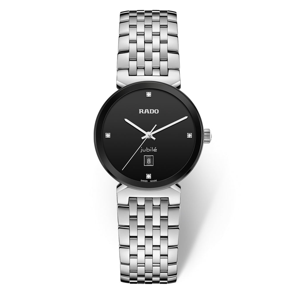 The harmonious design of the Rado Florence Classic calls to mind the elegant domes and towers of the city from which the collection takes its name. With quality quartz movements and innovative Rado edge-to-edge metallised sapphire crystal, these are Swiss-made pieces designed to stand the test of time. Rhodium-plated hands glide above four full-cut diamonds set as indexes at hours 3, 6, 9 and 12. Their sparkling presence is underscored and celebrated in the new Florence Classic collection by the return of the famous Jubilé logo.