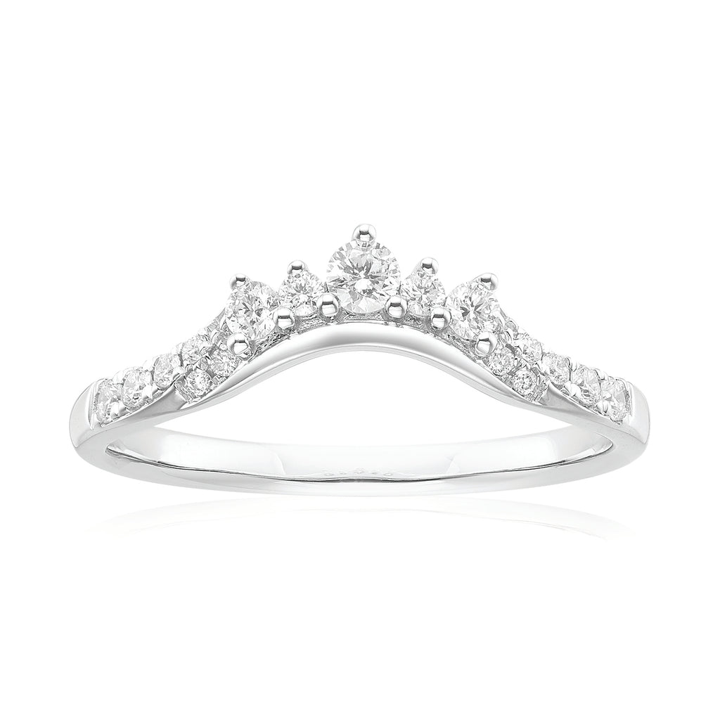 Celebrate eternal love with this curved diamond eternity ring, featuring 0.25 Carat tw of round brilliant diamonds in a claw setting, finished with 18ct White Gold.