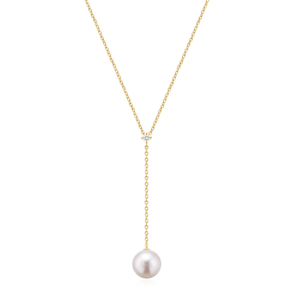 Perla by Autore 18-Carat Yellow Gold with 10mm White South Sea Pearl Diamond Set Necklace