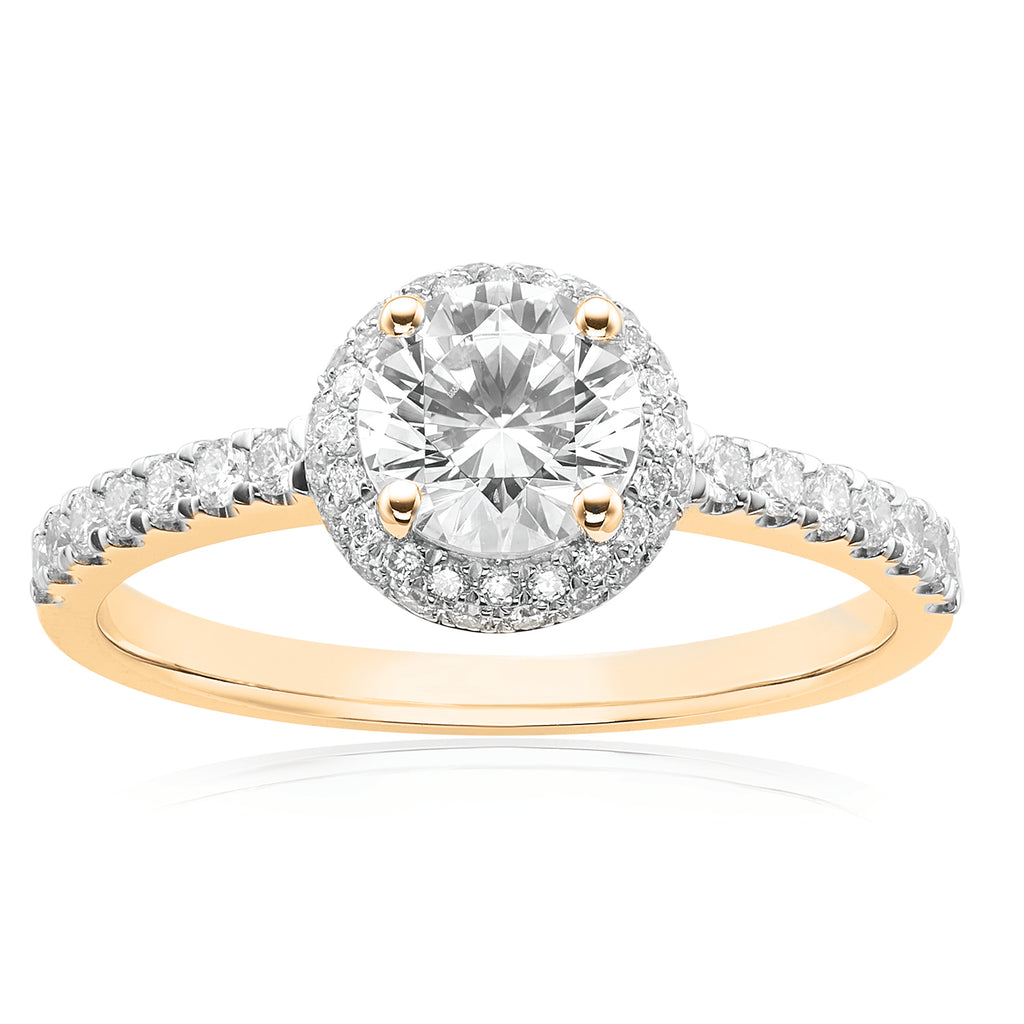 Halo 18ct Yellow Gold Round 1 CTW Halo Diamond Ring