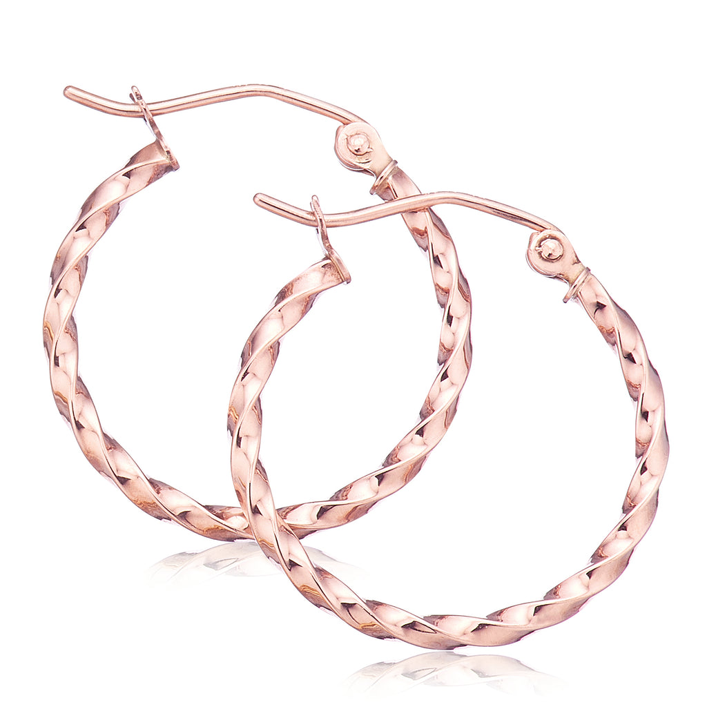 9ct Rose Gold Round 2x20mm Pattern Hoop Earrings