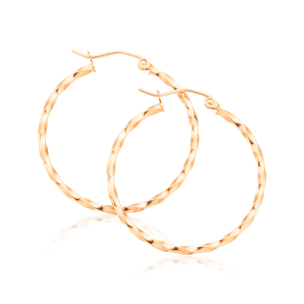 9ct Rose Gold Round 2x30mm Pattern Hoop Earrings
