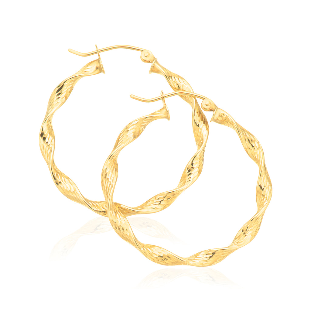 9ct Yellow Gold Round 3x30mm Twist Hoop Earrings