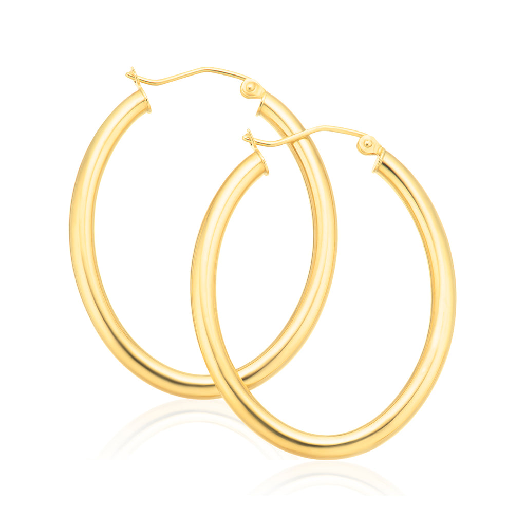 9ct Yellow Gold Oval 3x28x38mm Hoop Earrings