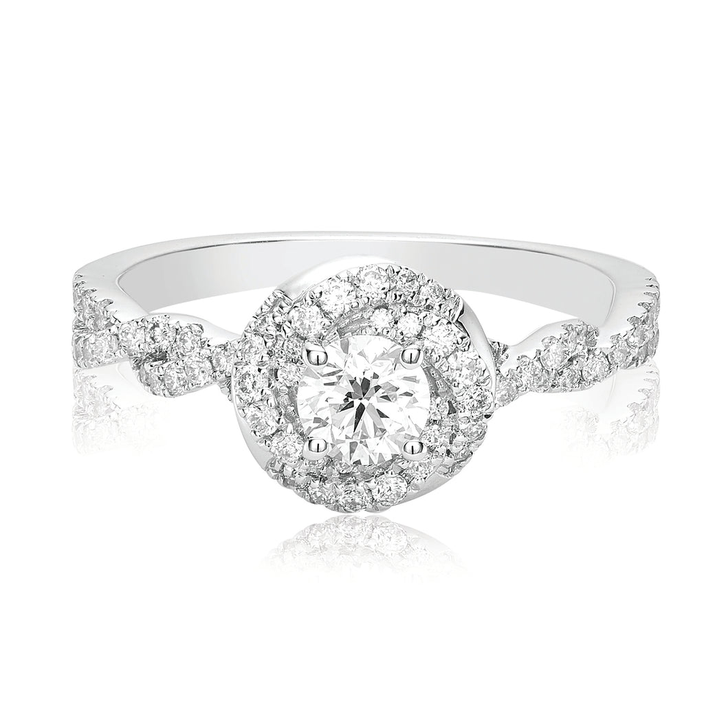 Our Halo Collection brings together classic, elegant and modern designs. This 18ct white gold Halo ring is adorned in 0.75 Carat tw GIA certified round brilliant cut diamonds.