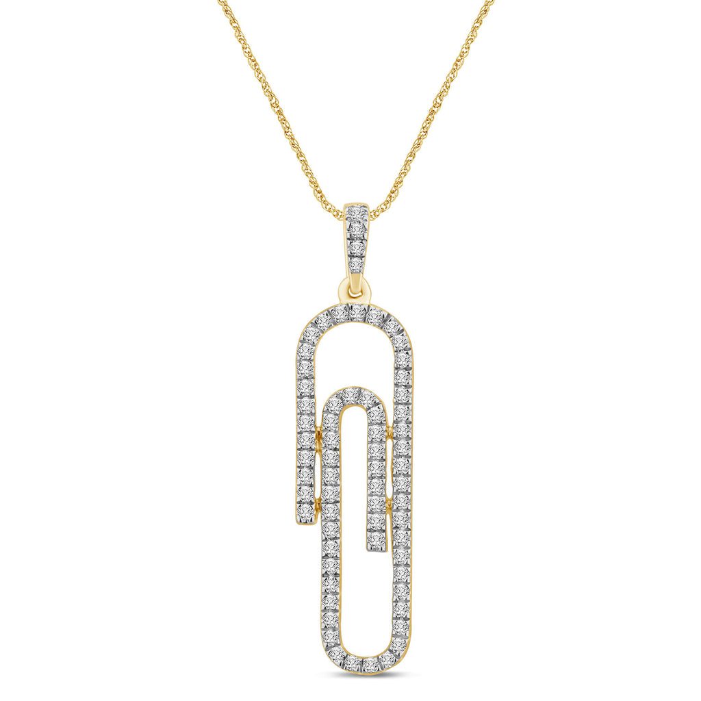 9ct Yellow Gold Round Brilliant Cut 0.25 carat tw Diamond Paper Clip Pendant with Chain