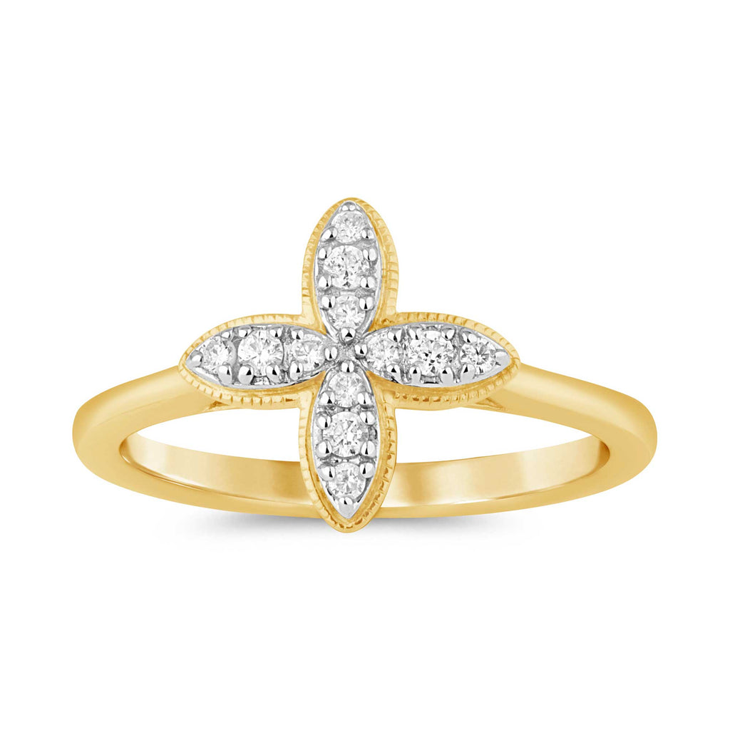 9ct Yellow Gold Round Brilliant Cut 0.15 ctw Flower Diamond Dress Ring