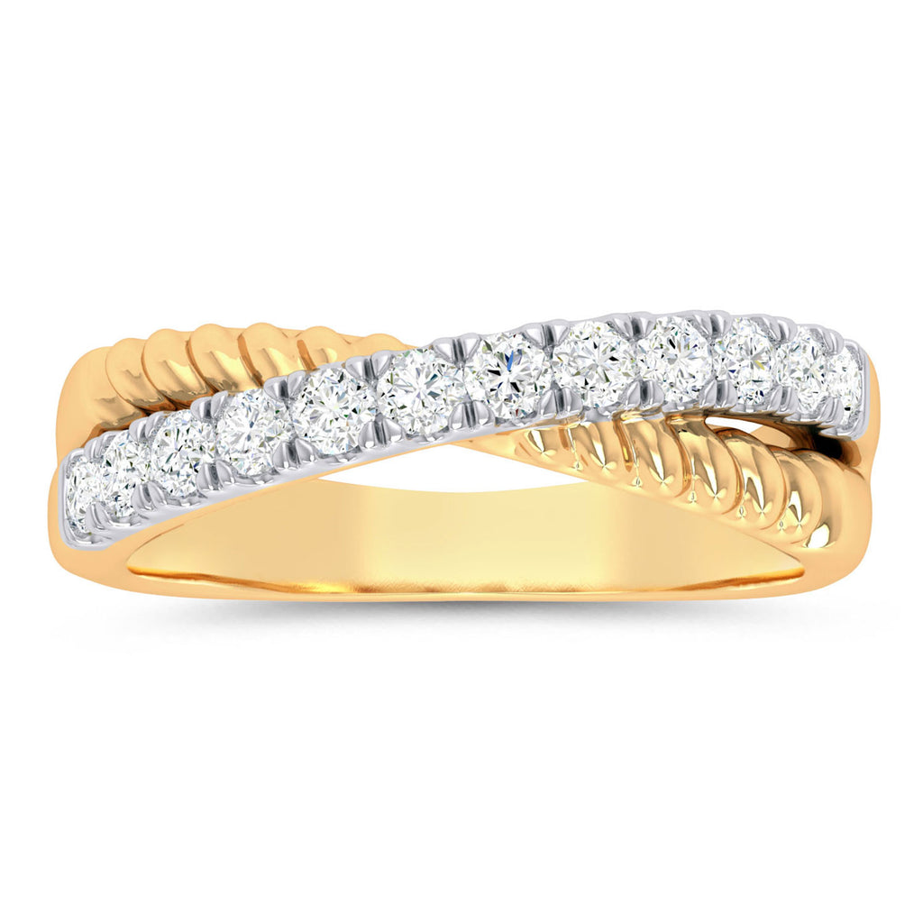 9ct Yellow Gold Round Brilliant Cut 0.50 carat tw Diamond Cross Over Ring