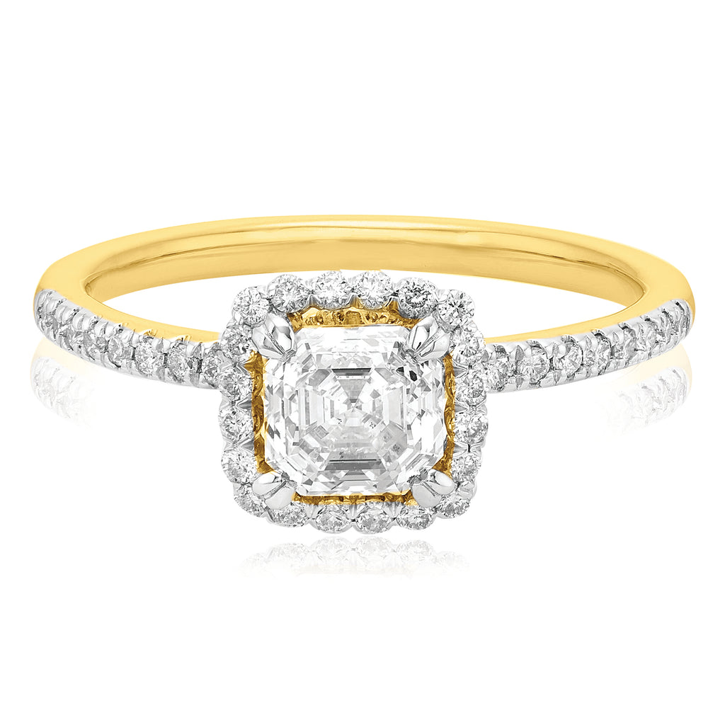 18ct Yellow Gold Asscher & Round Brilliant Cut 1.25 ctw Diamond Ring