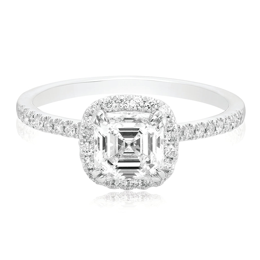18ct White Gold Asscher & Round Brilliant Cut 1.75 ctw Diamond Ring