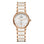 The classic Centrix Automatic Diamonds watch has been reworked not only technically, but also aesthetically. The modified model has a rounded sapphire crystal that extends all the way to the edge and a curved case blending with the curved crystal edge. The overall appearance of this iconic timepiece is completed with adjusted case lugs and a bracelet made of polished rose-gold-coloured PVD-coated stainless steel with white high-tech ceramic middle links. The silver facetted dial has an opulent 3D effect created by stamping a shaped dial and then filling it with lacquer. Inside, the three-hand calibre R582 movement exceeds standard accuracy test requirements from 3 to 5 positions, thanks to its antimagnetic Nivachron™ hairspring for increased reliability and accuracy. The watch is water resistant down to 50 m and offers 48 hours of power reserve.