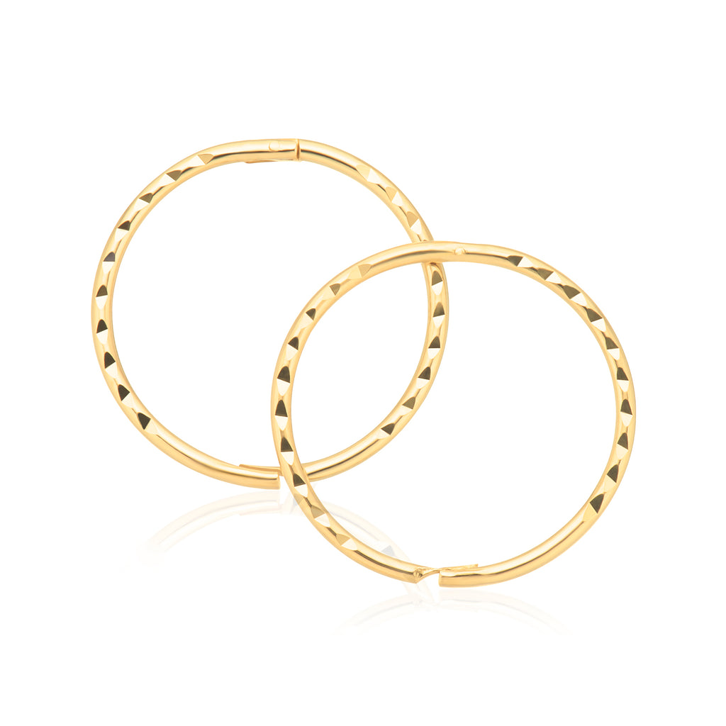9ct Yellow Gold 14mm Diacut Sleeper Hoop Earrings