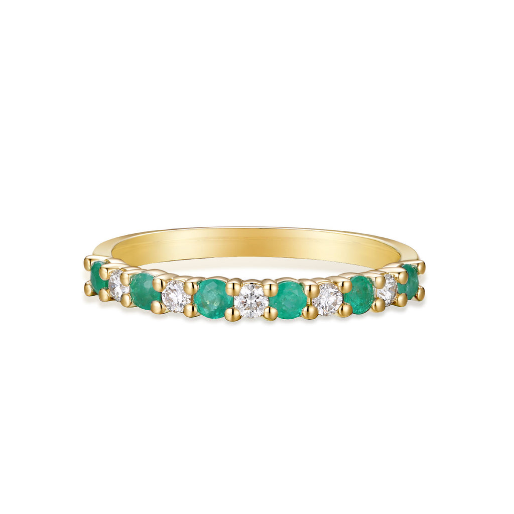 9ct Yellow Gold Round Cut 2.25mm Emerald 0.15 Carat tw Ring