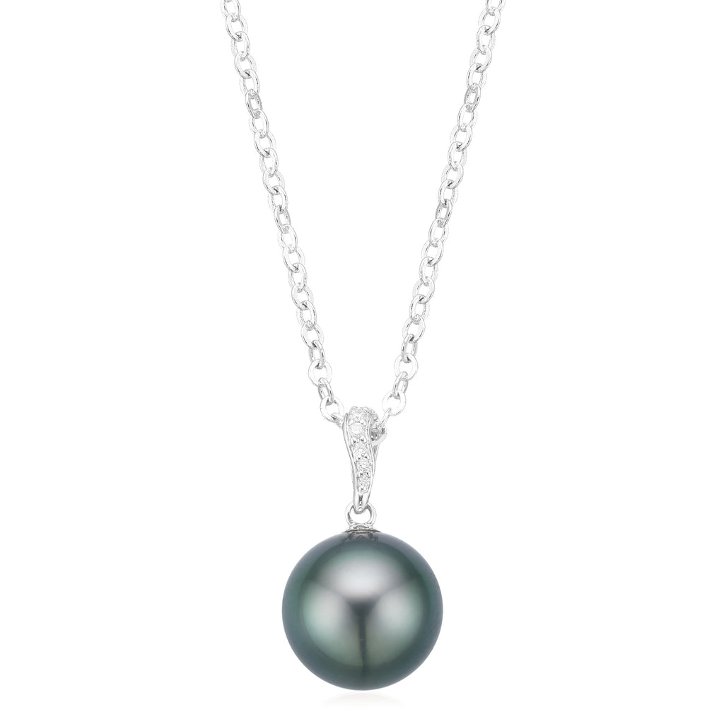 Perla by Autore 18ct White Gold 9mm Tahitian Pearl and Diamond Set Pendant