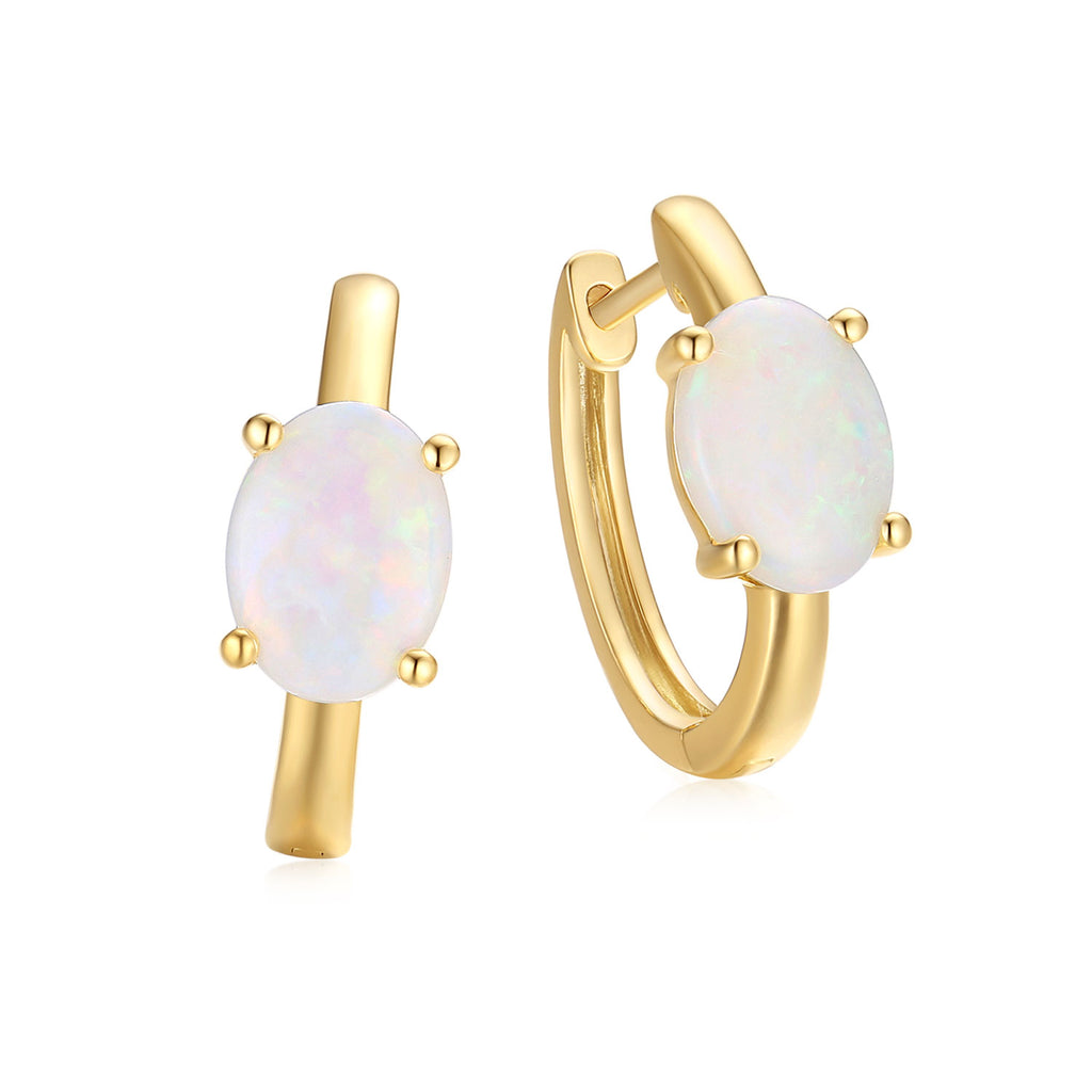 18ct Yellow Gold Oval 8x6mm White Opal Hoop Earrings