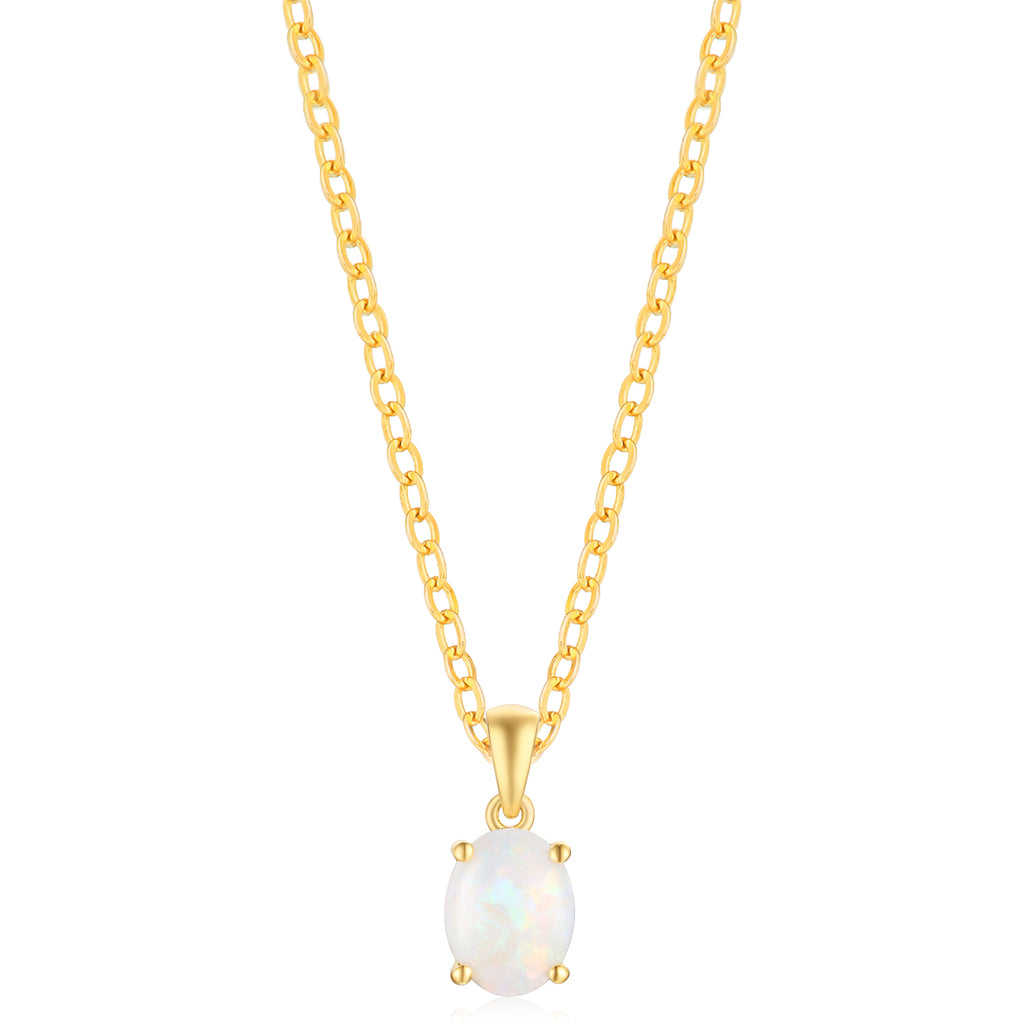18ct Yellow Gold Oval 9x7mm White Opal Pendant