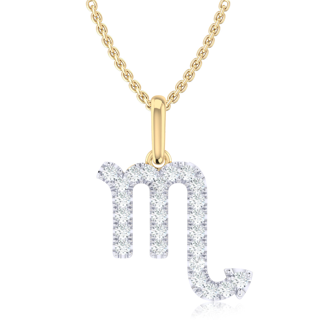 9ct Yellow Gold Round Brilliant Cut 0.15 Carat tw of Diamonds Scorpio Pendant