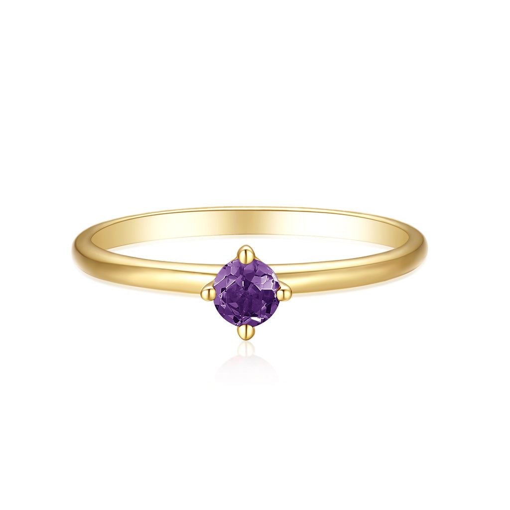 9ct Yellow Gold Round Cut 3.5mm Amethyst February Birthstone Ring