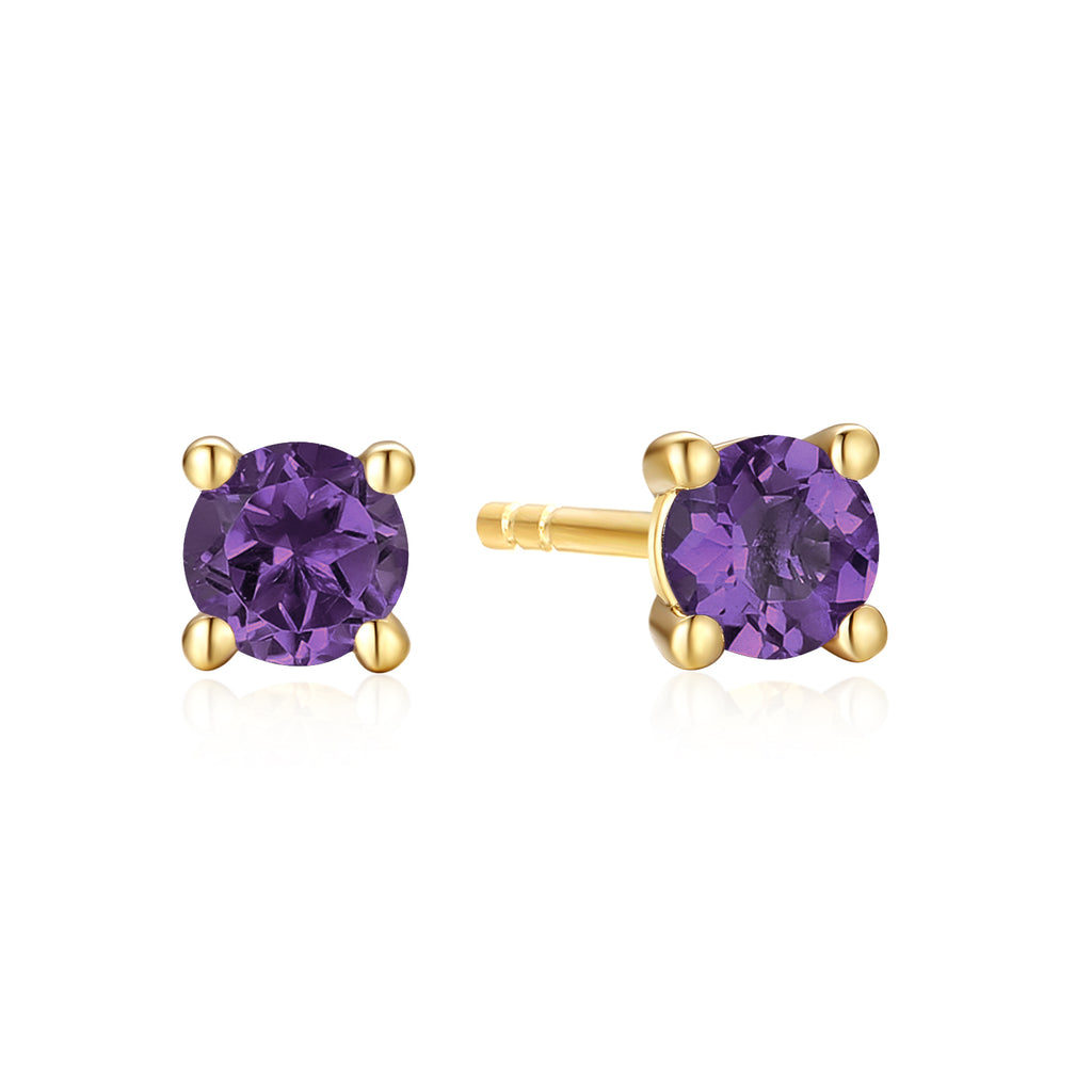 9ct Yellow Gold Round Cut 3.5mm Amethyst February Birthstone Earrings