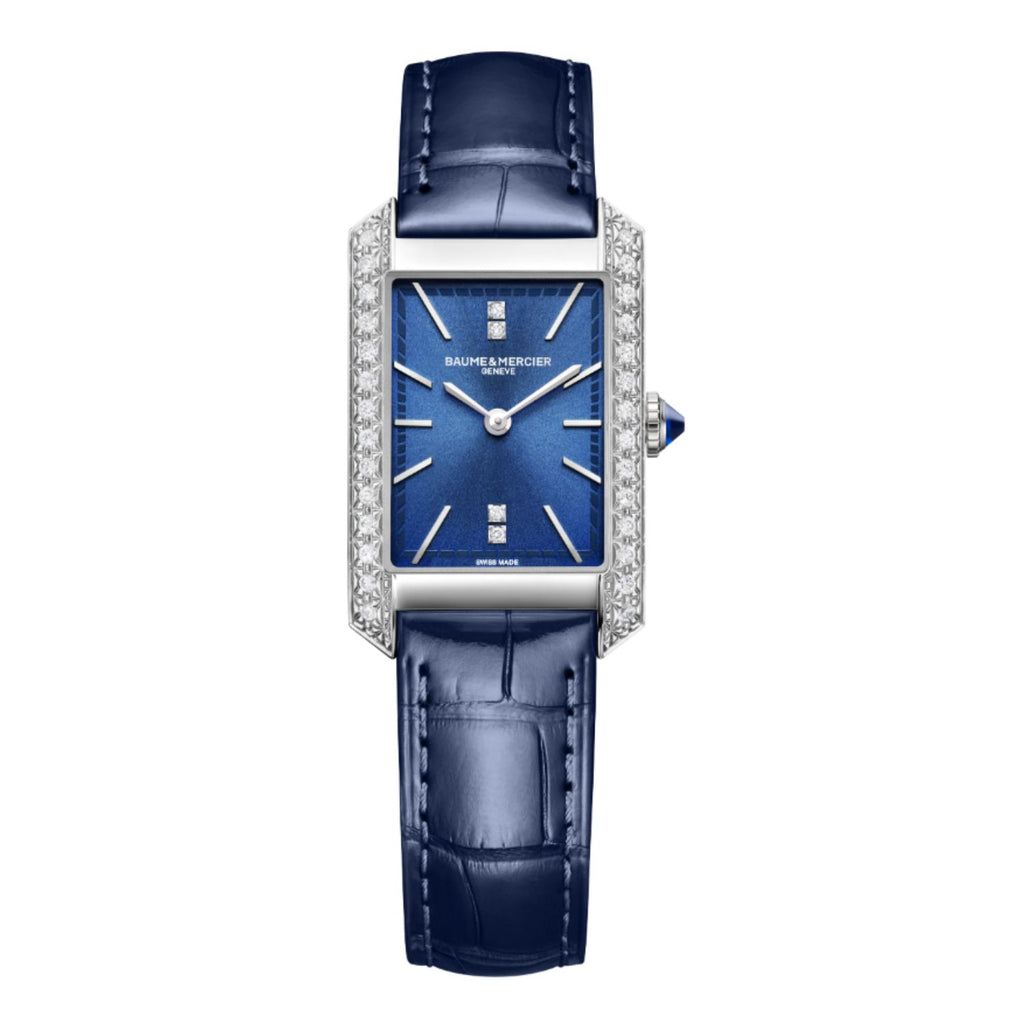 With its gem-set midnight blue dial, this precious ladies’ model has the elegance of a gala celebration. It may also be worn by day, thanks to the restraint of the pure lines that are characteristic of the collection and indeed all Baume & Mercier timepieces, none of which are ostentatious. Balance and harmony are also ex-pressed through this decorative minimalism.