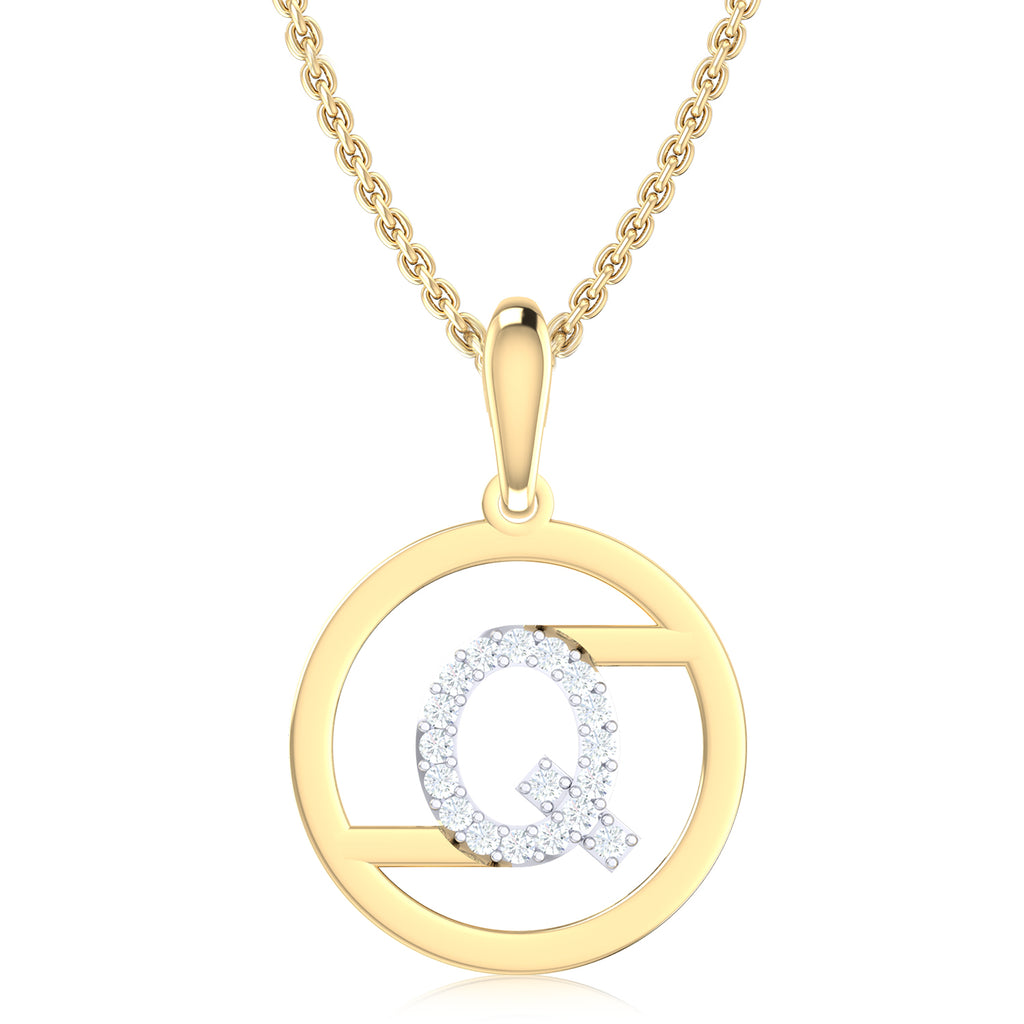 This initial Q pendant is crafted from 9ct yellow gold and plated with a layer of rhodium for a luxurious finish. Perfect for wearing with any outfit, it will add a touch of timeless elegance to any look.