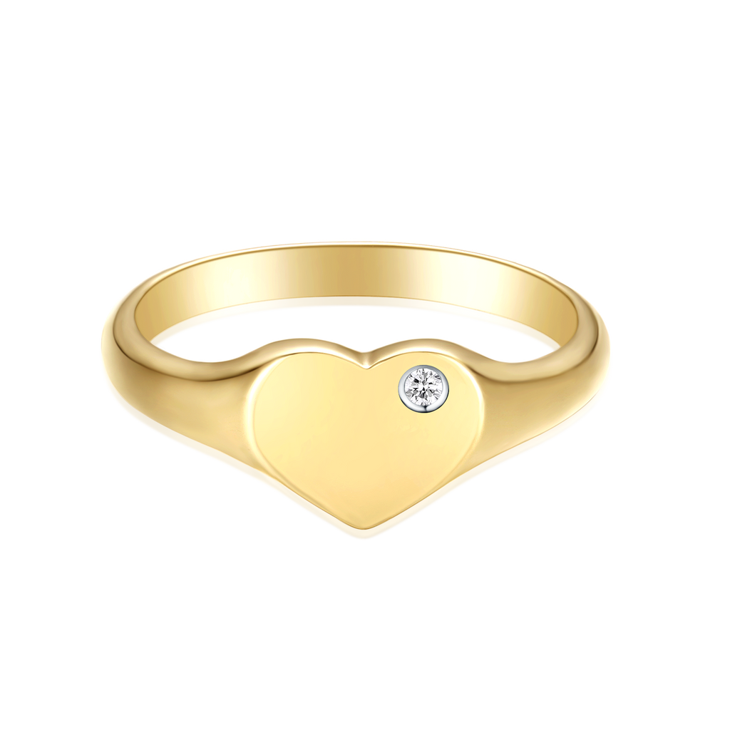 Show your love with this exquisite 9ct yellow gold heart signet ring set with a round cut diamond of sparkling brilliance. Timelessly crafted, this romantic piece of jewellery will make an unforgettable statement.