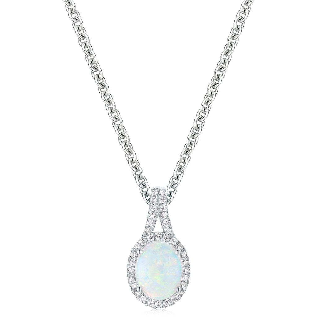 18ct White Gold Oval 9x7mm White Opal 0.15 Carat tw Pendant