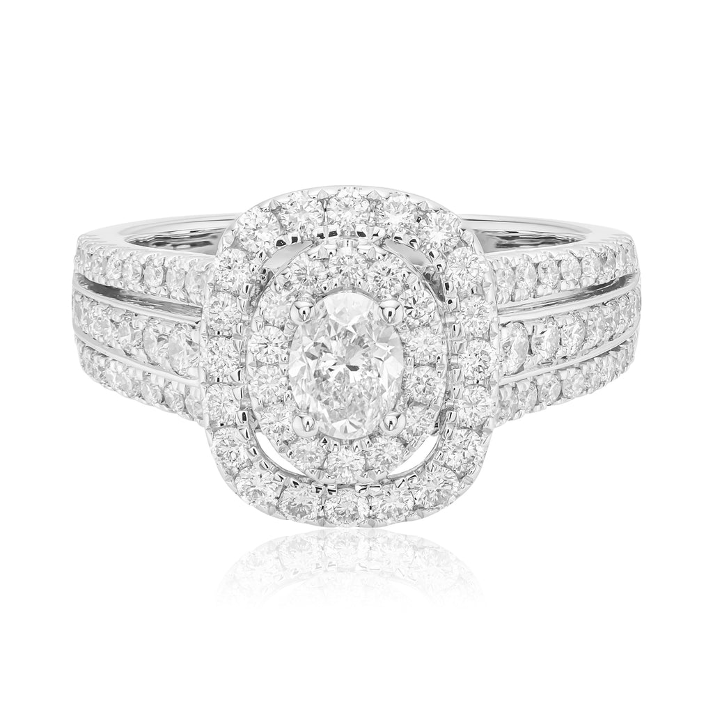 Crafted from 18ct white gold with an elegant oval and round brilliant cut, this exquisite diamond ring from Vera Wang will make a timeless addition to any jewellery collection. Boasting a stunning 1.45 Carat tw of diamonds, it will sparkle with luxury and charm for years to come.