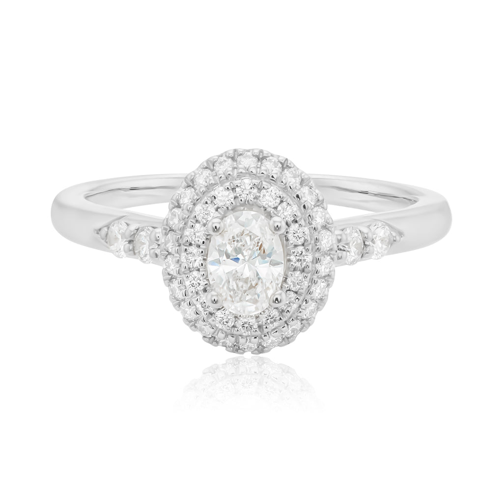 Vera Wang 18ct White Gold Oval & Round Brilliant Cut 0.58 Carat tw Diamond Ring
