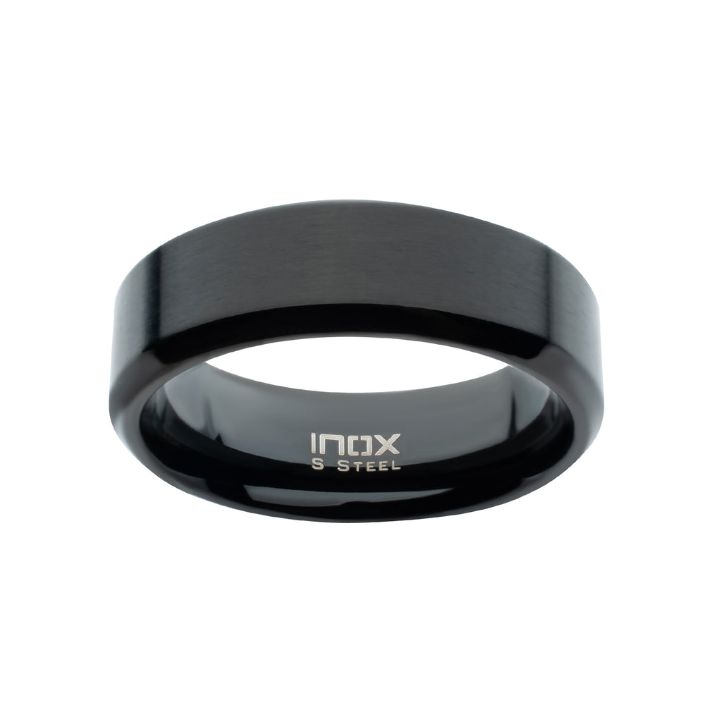 Stainless Steel Black Tone 8mm Matte Bevel Ring