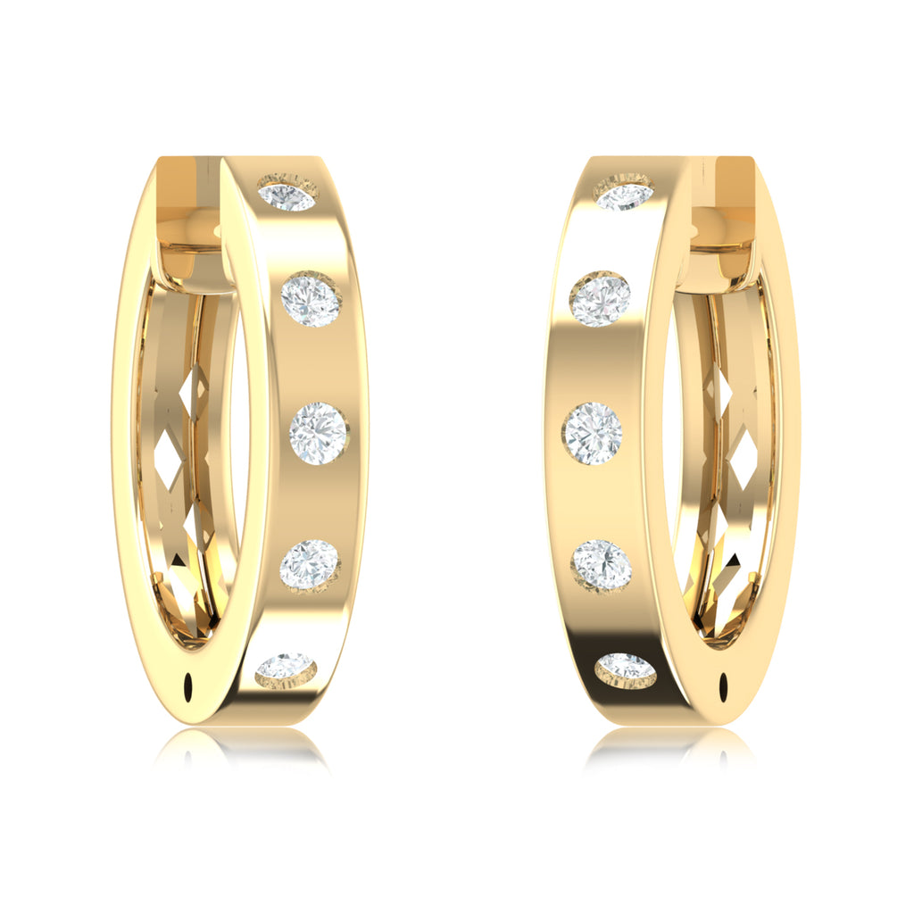 9ct Yellow Gold Round Cut 0.15 Carat tw Diamond Huggie Earrings