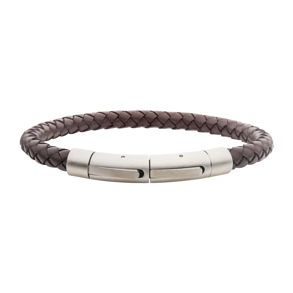 Stainless Steel 21cm Brown Leather Bracelet