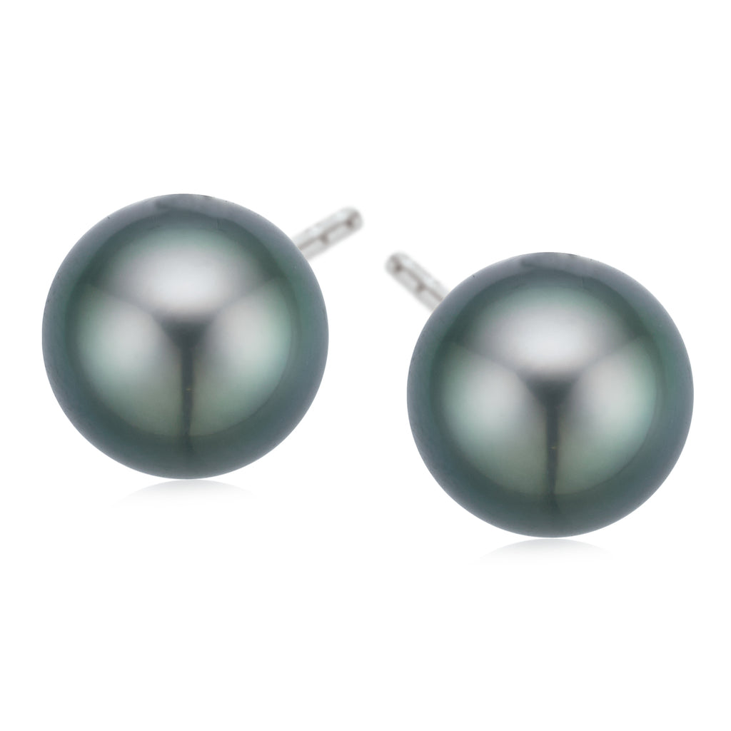 Perla By Autore 18ct White Gold Round 9mm Tahitian Pearl Stud Earrings