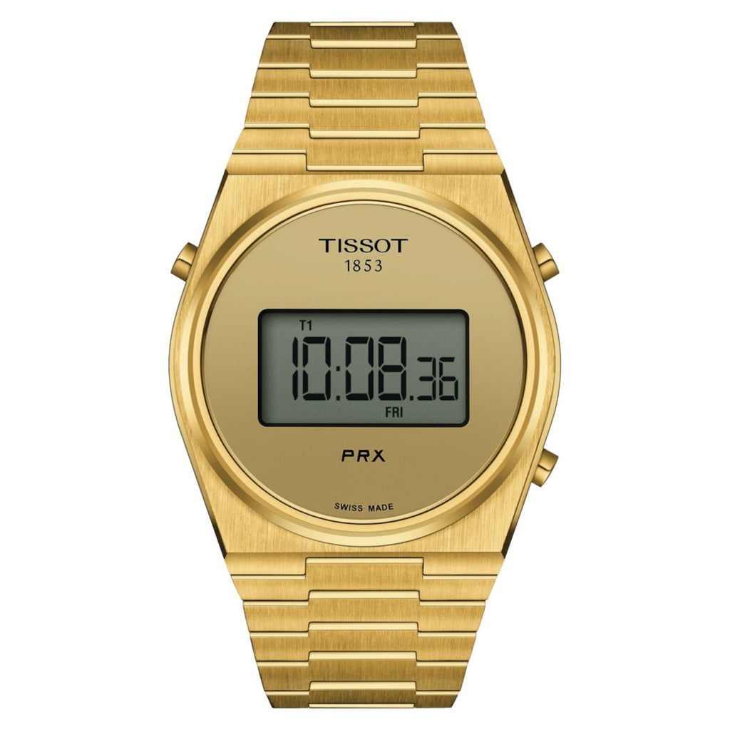 The Tissot PRX Digital, a harmonious blend of the iconic 1978 PRX design and the Tissot Digital Quartz (Calibre 4012), brilliantly exhibits a hybrid of past eras and digital influence. Seamlessly blending retro aesthetics with a contemporary twist, it's the timekeeper for today's trailblazers. The PRX Digital, available in 35mm and 40mm options and a variety of colours, cater to all wrists, while the multitude of features - dual time zones, day-date, chronograph, and more - cater to all needs. Encased in a shell water-resistant up to 100 metres and fastened with a satin-finish bracelet and a triple-blade folding clasp, these timepieces are crafted for both endurance and comfort. The Tissot PRX Digital collection symbolises a journey through time, a tribute to the past and a toast to the future.