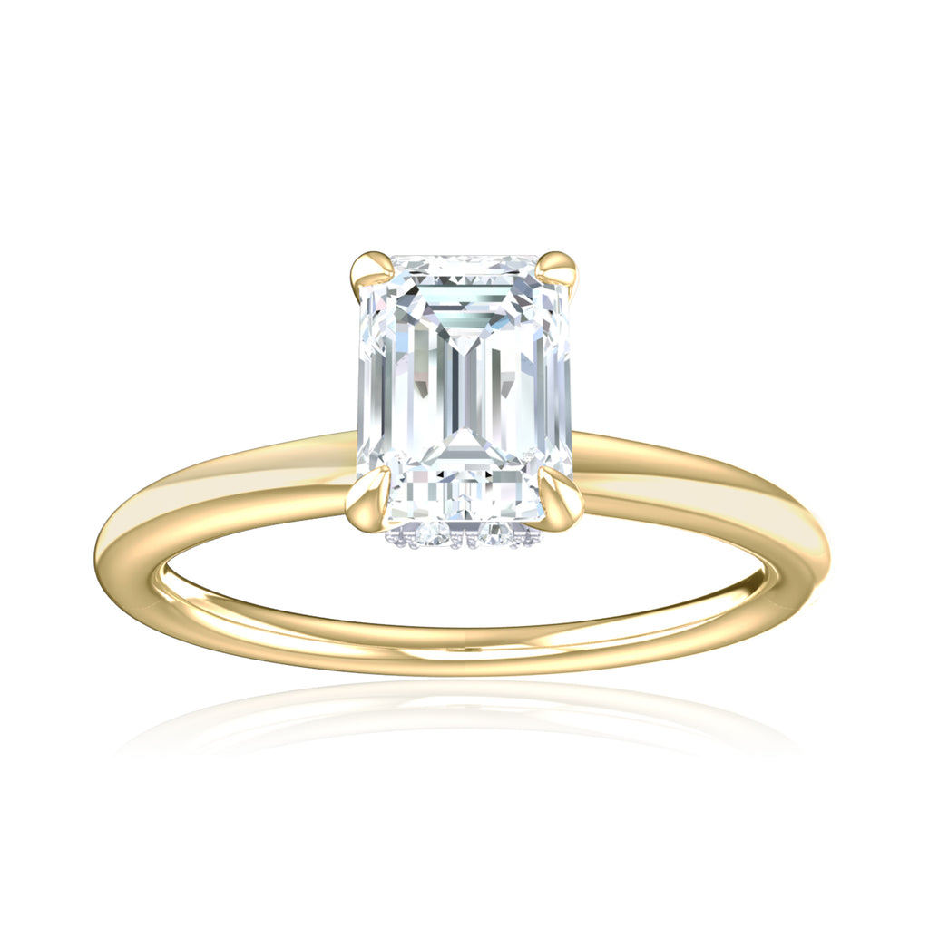 Crafted with care, this exquisite 18ct yellow gold ring is adorned with 0.55 carat tw of lab-grown diamonds. Captivating emerald and round-cut diamonds sparkle prominently in the light, while the gold band glistens sensually beneath. An unforgettable statement ring for your special moments.