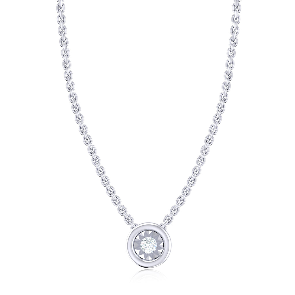 This fine 9ct white gold pendant features a round cut 0.15 carat tw diamond for a touch of sophisticated elegance. Crafted to the highest standards, this classic design is the perfect way to add a touch of timeless glamour to your look.