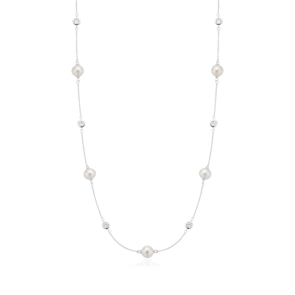 Vera Wang Sterling Silver Round Cut 0.60 Carat tw Diamond, Sapphire, and Fresh Water Pearl Necklace