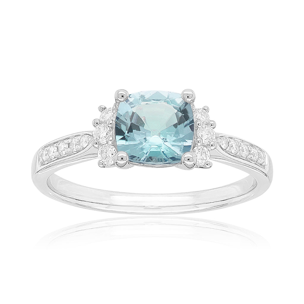 Heirloom 18ct White Gold Cushion Cut 6mm Aquamarine 0.15 Carat tw Ring