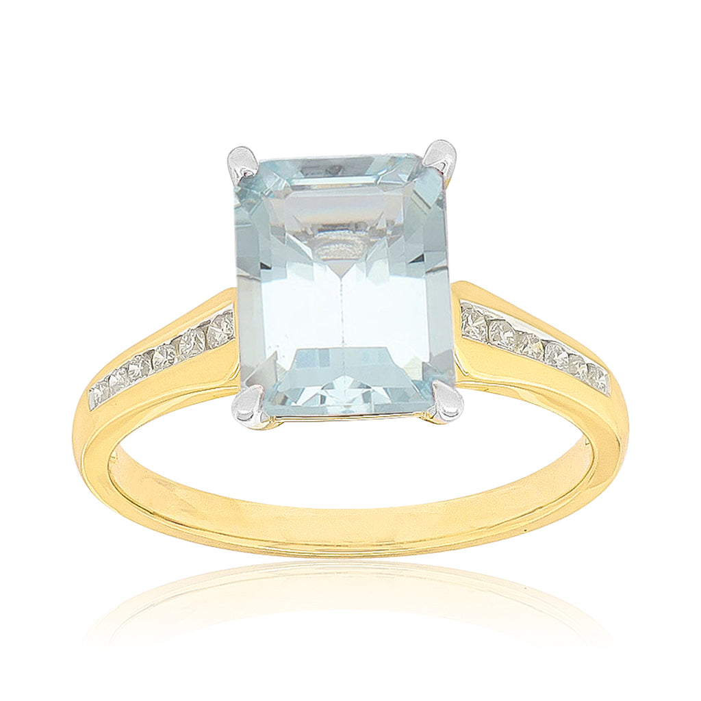 Created with a level of sophistication rarely seen, this luxurious Heirloom 18ct Yellow Gold Emerald Cut 9x7mm Aquamarine 0.10 Carat tw Ring is an exquisite piece sure to take your breath away. Its smooth aquamarine gemstone shimmers in the light, adorning your hand with elegance and grace. Make a grand statement with this timeless, sophisticated piece.