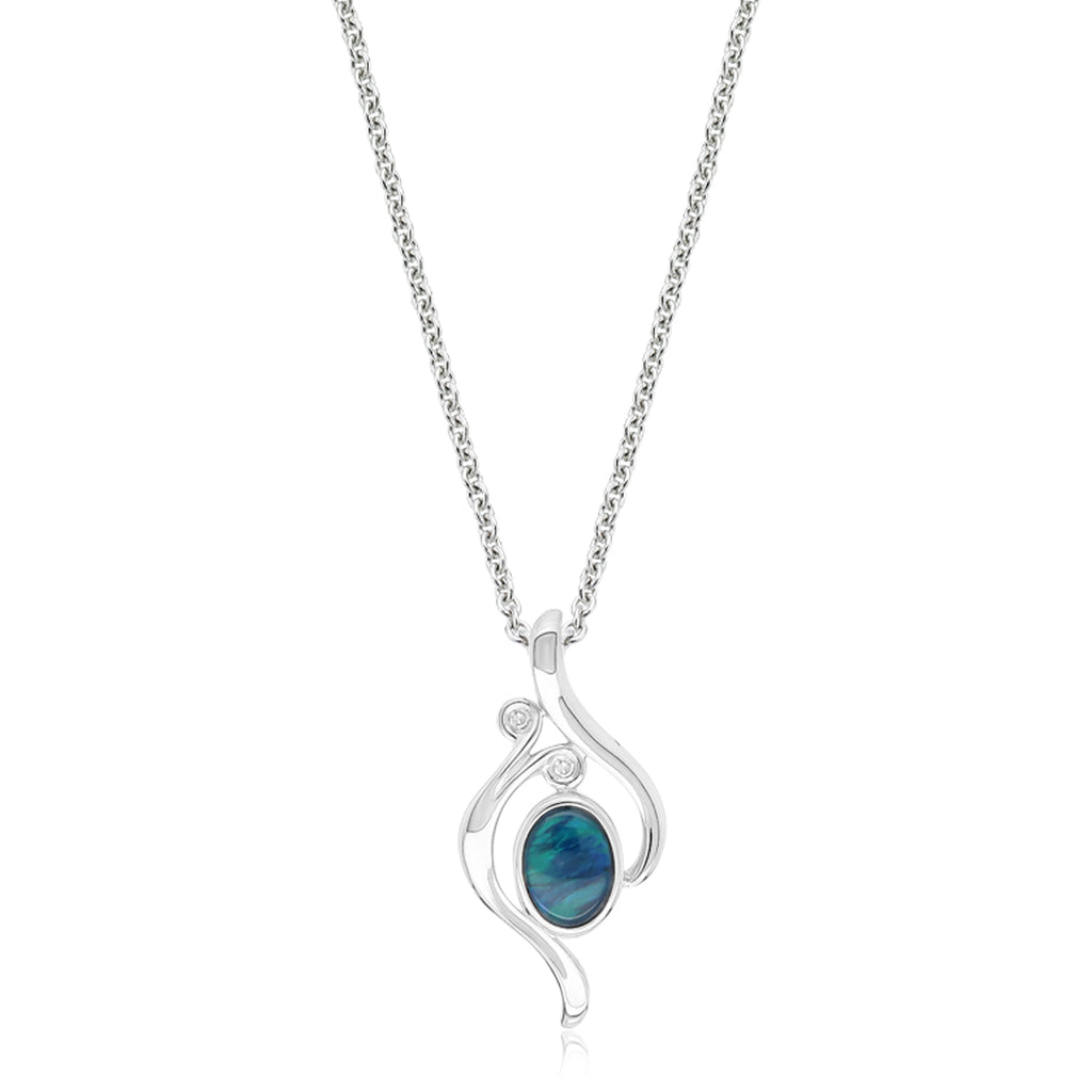 Heirloom 18ct White Gold Oval Cut 7x5mm Black Opal 0.02 Carat tw Pendant