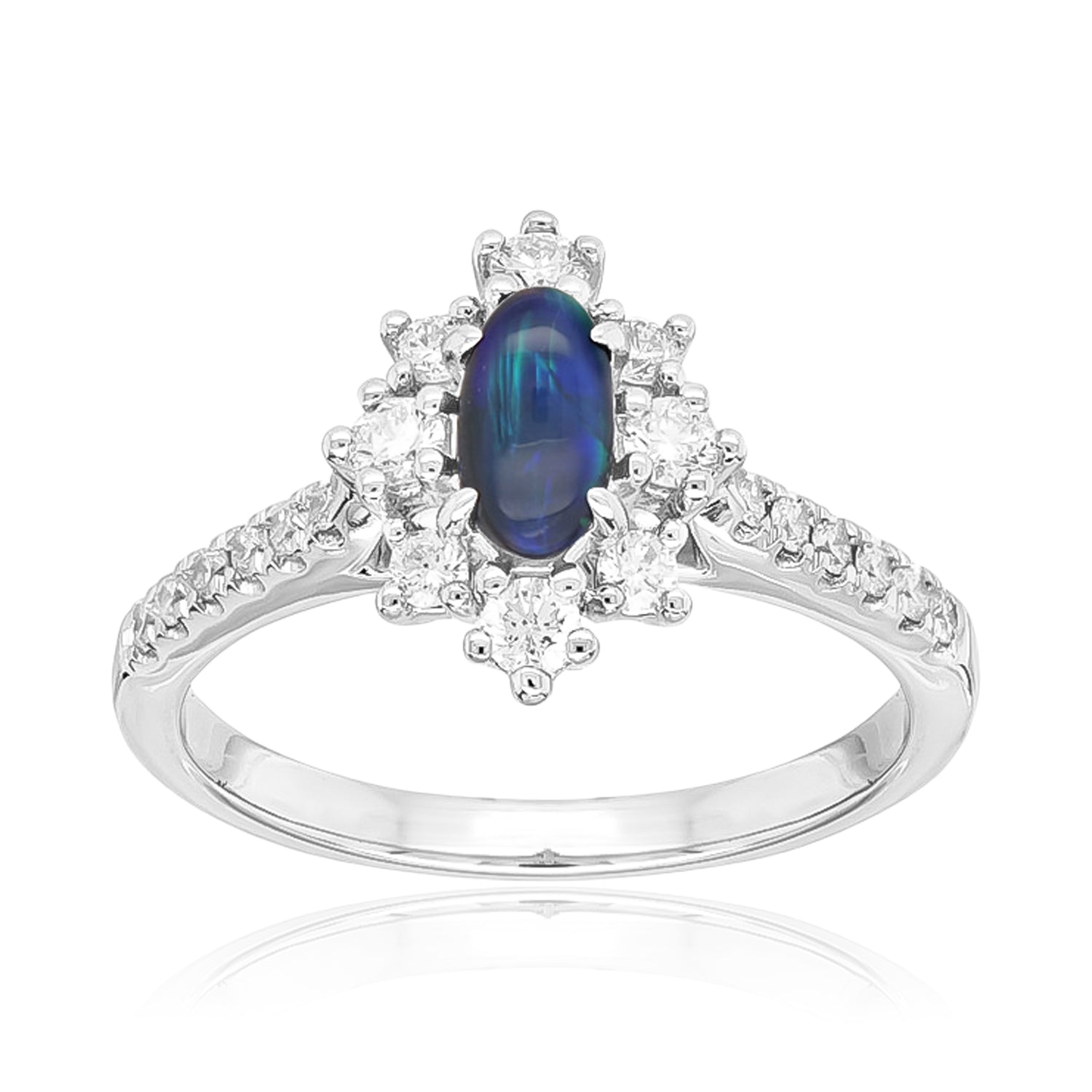 Heirloom 18ct White Gold Oval Cut 6x4mm Black Opal 0.35 Carat tw Ring