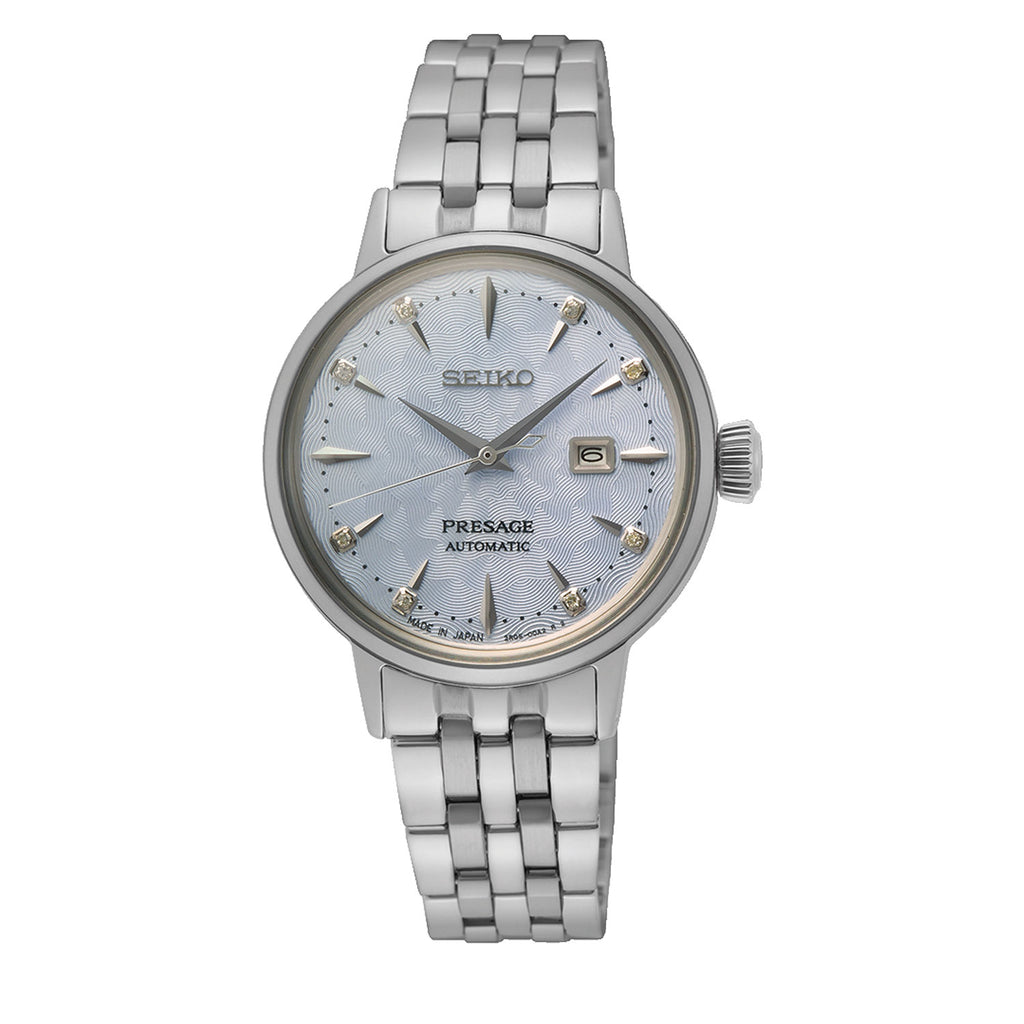 Indulge in timeless elegance with the Seiko Presage Cocktail Time Watch SRE007J. This luxurious timepiece is adorned with 8 sparkling diamonds and boasts a 30.3mm stainless steel case, providing both durability and sophistication. Its automatic movement, powered by the wearer, ensures precision and convenience. This watch is a must-have for any sophisticated individual.