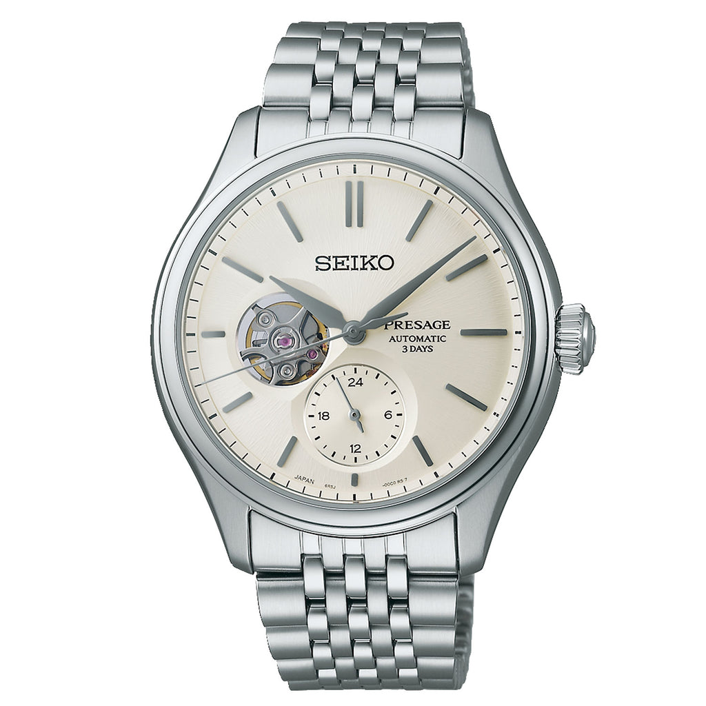 Introducing the Seiko Presage Classic Automatic Watch SPB469J - a timepiece that combines sophistication and functionality. Powered by the movement of the wearer, this analogue watch boasts a 40.2mm stainless steel case with an exhibition case back and is water-resistant up to 100 metres. Elevate your style with this luxurious and tasteful accessory.
