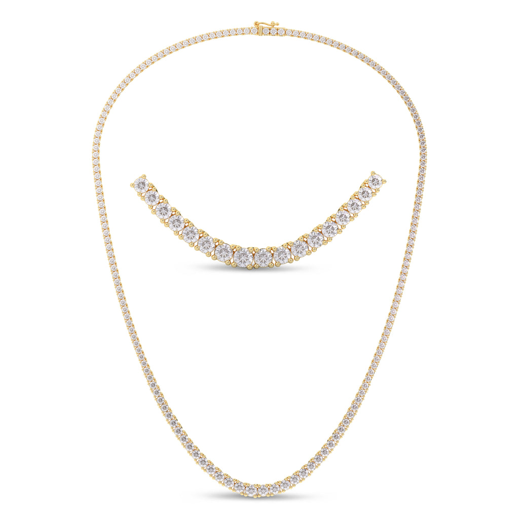 10ct Yellow Gold Round Cut 10 Carat tw Lab Grown Diamond Tennis Necklace