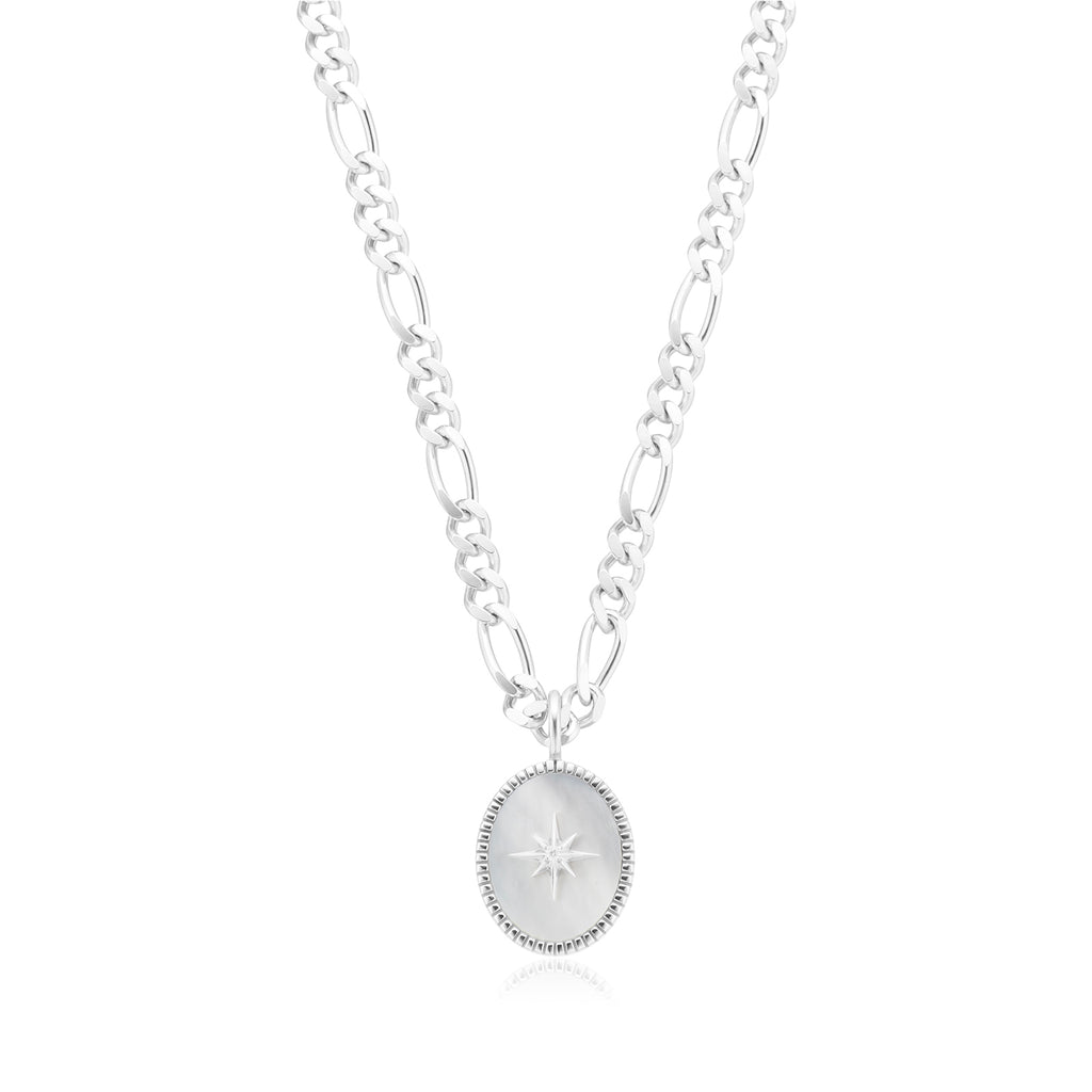 Perla by Autore Sterling Silver 60cm Mother of Pearl Figaro Necklace
