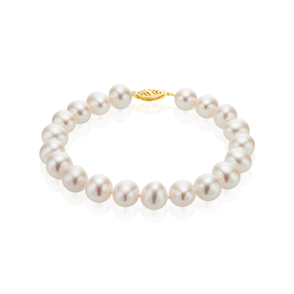 14ct Yellow Gold 9-10mm White Cultured Fresh Water Pearl Bracelet