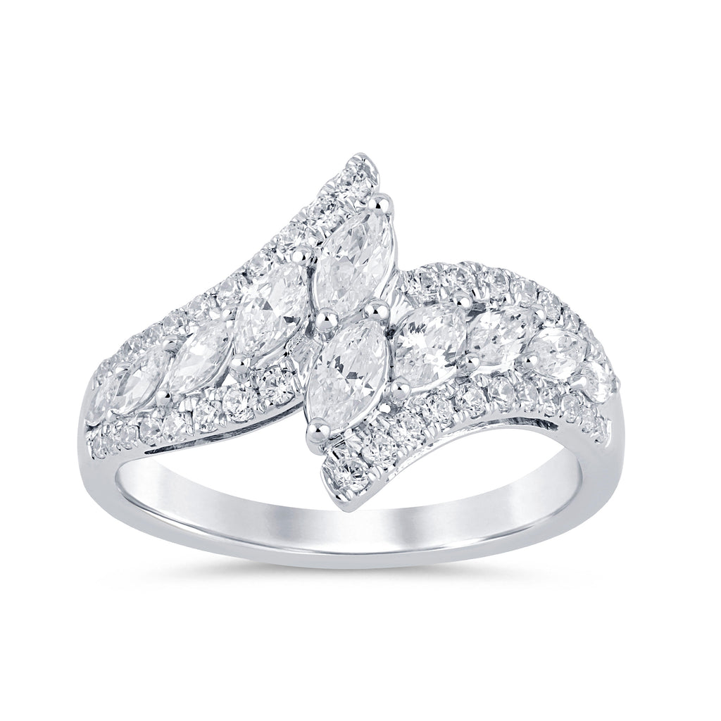 Indulge in luxury with our exquisite 18ct White Gold Marquise & Round Cut Diamond Ring. This ring features a stunning combination of marquise and round cut diamonds totalling 1.20 carats. Elevate any outfit and exude sophistication with this timeless piece.