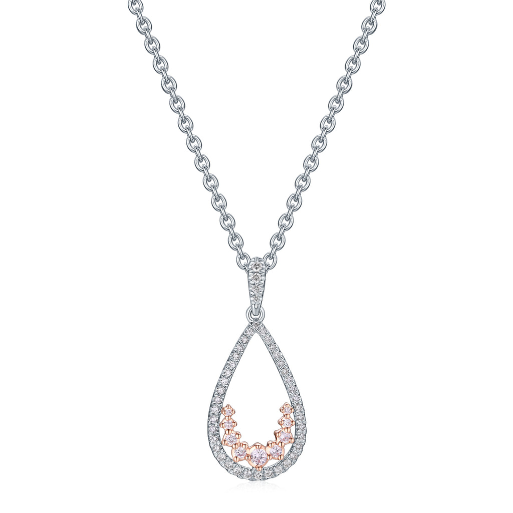 9ct White & Rose Gold Round Cut 0.35 Carat tw Pink & White Diamond Pendant