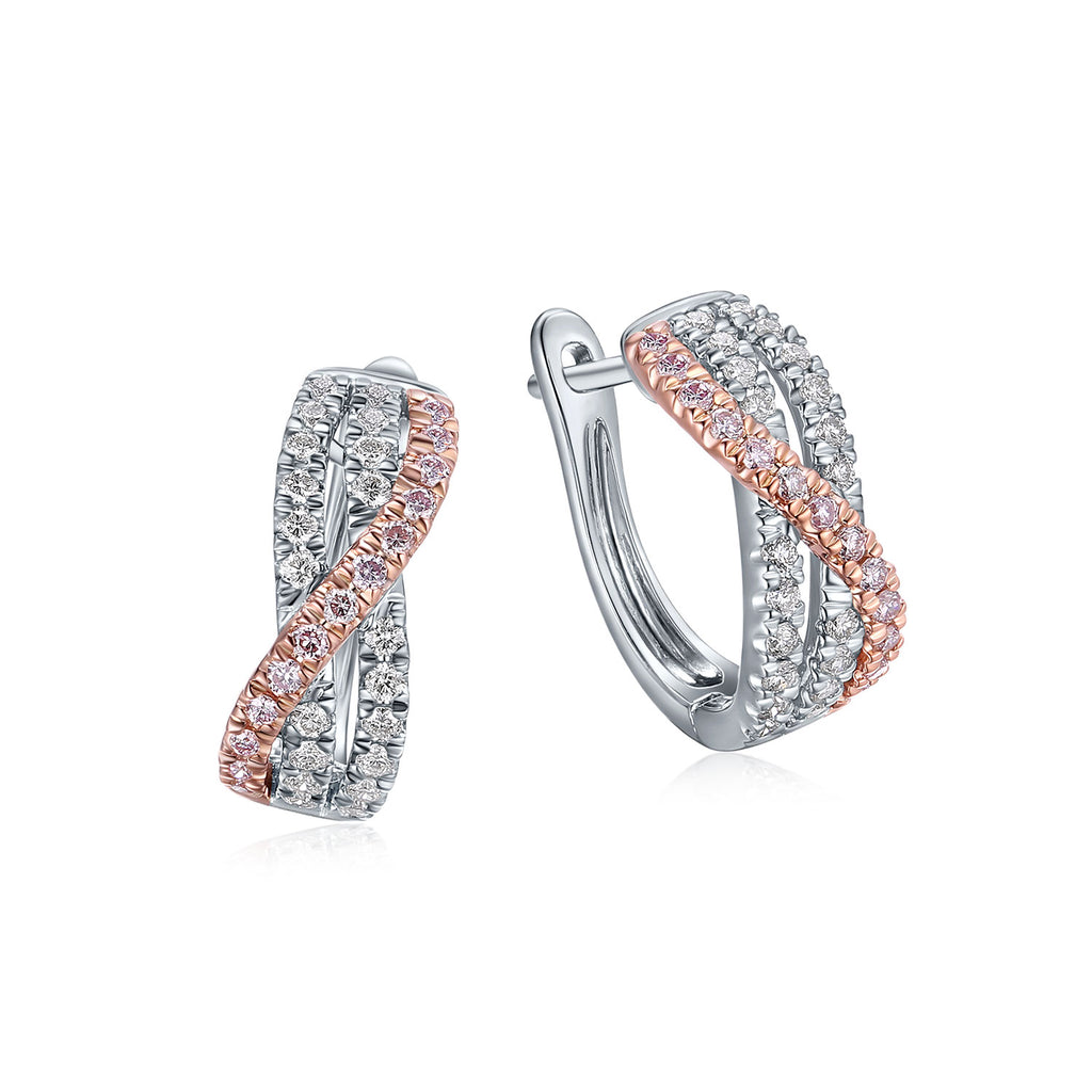 9ct White & Rose Gold Round Cut 0.33 Carat tw Pink & White Diamond Earrings