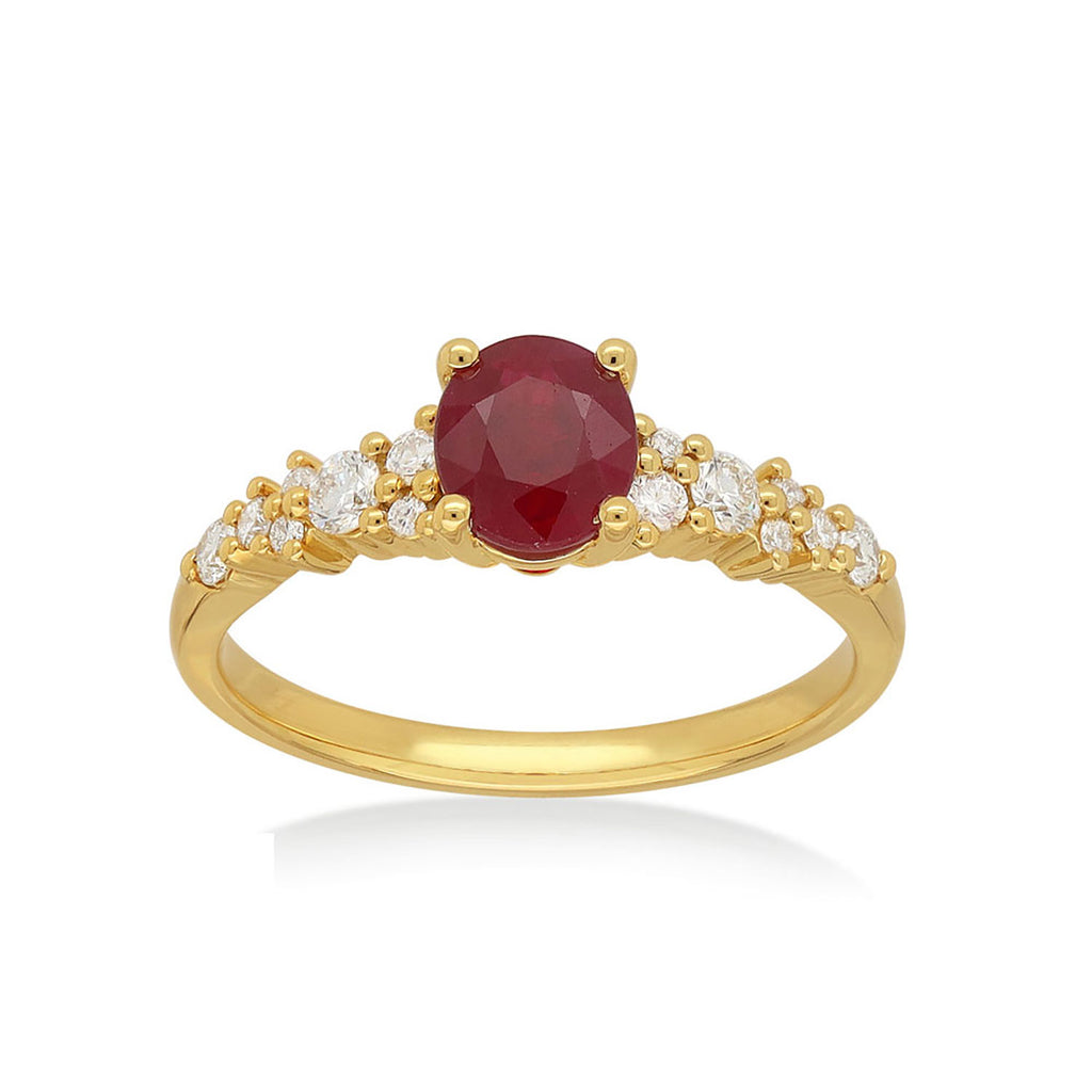 Indulge in sophistication with our Heirloom 18ct Yellow Gold Round & Oval Cut 6x5mm Ruby Diamond Set 0.25 Carat tw Ring. This elegant and exclusive ring features a stunning 6x5mm ruby set in 18ct yellow gold, accented with diamonds. Embrace luxury with a true heirloom piece.
